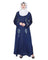 Get a perfect blend of glamour and trend.This dubai style abaya will not fail to catch your fancy at a single glance as it highlights the abaya with the gorgeous floral embroidery on the bodice and the sleeves.A must have addition to your modest wardrobe.