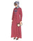 Let the demure onion pink feminine abaya take charge of your modest closet this season. It is crafted with chikan embroidery boota with tiny tassels on the bodice, box pleated flair and slightly flaired sleeves ensemble the sillhouette more feminine.Team it up with hijab that matches with embroidery colour.